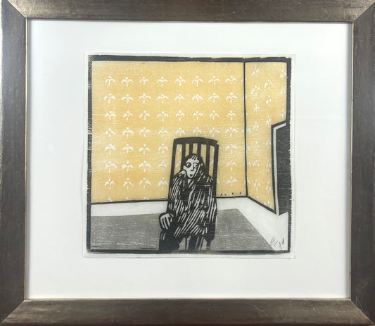 Knortz, Manuel, Mann auf Stuhl, 31 x 30cm, Holzschnitt